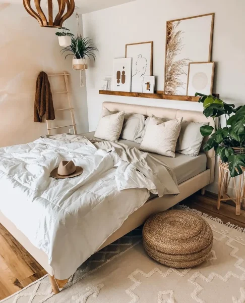 Đồ nội thất trong phòng ngủ Bohemian thường mang phong cách vintage với các món đồ độc đáo. Có thể kể đến như giường bệt, ghế bành bọc vải thổ cẩm và thảm dệt thủ công. Mỗi món đồ đều mang một nét riêng, tạo nên sự đa dạng và phong phú cho không gian.